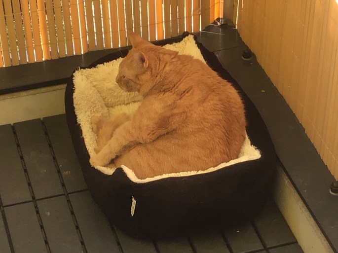 Seit unserem letzten Umzug, vor gut 18 Monaten hat Spiky, der die Unabhängigkeit vom Menschen genauso liebte, wie deren Fürsorge zwei wunderschöne Sommer auf unserem Balkon verbracht. Er hat auf seinem kleinen Teppich gelegen und gern das Treiben in unserem Karree betrachtet. Die Menschen, die kamen und gingen weckten seine Neugier und besonders die spielenden Kinder hatten es ihm angetan. Er konnte stundenlang in seinem „Schlafpantoffel“ liegen und das Leben um sich herum genießen.