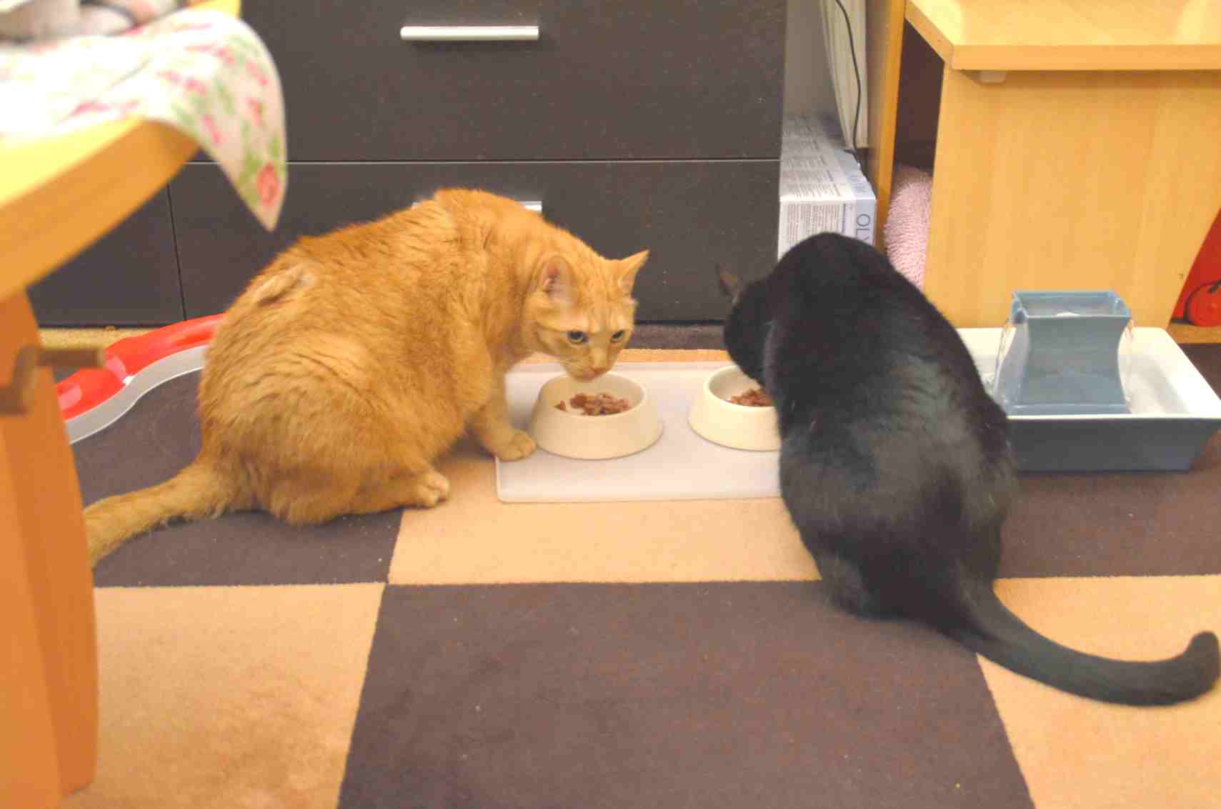 Während der Patrouillengang im Parallelmarsch mit aufgerichtetem Schwanz stattfand, wurde anschließend – versetzt – am Futterort gesessen, der ranghöhere etwas vorn, der andere leicht schräg dahinter, den Kopf nasch oben gerichtet, mit klarem Gestus, der Dosenöffner möge sich doch beeilen. Diese morgendliche Routine hielten Spiky und Nelson bis zu dem Tag ein, an dem Spiky zum letzten Mal Futter zu sich nahm. Danach kamen beide nicht mehr, der eine todkrank, der andere mochte wohl nicht mehr, als wüsste er, wie es um seinen Kumpel steht. Nelson lies Spiky auch immer den Vorrang am Futternapf und begann erst mit dem Fressen, wenn der „Chef“ seine Wahl getroffen hatte. Natürlich machte er auch Platz, wenn Spiky seine Wahl nochmal änderte.