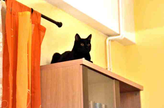 Schwarze Katzen sind überaus neugierig. Sobald ein verschlossener Raum oder eine Kiste, ein Schrank oder eine Ecke im Haus zu erkunden sind, versuchen sie diese zu erkunden.