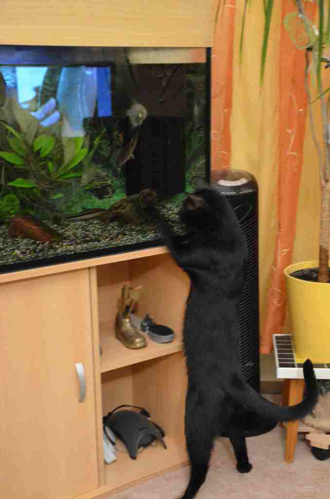 Sie waren begeistert vom Aquarium und saßen davor oder lagen darauf, um die Fische zu beobachten oder nach ihnen zu langen.