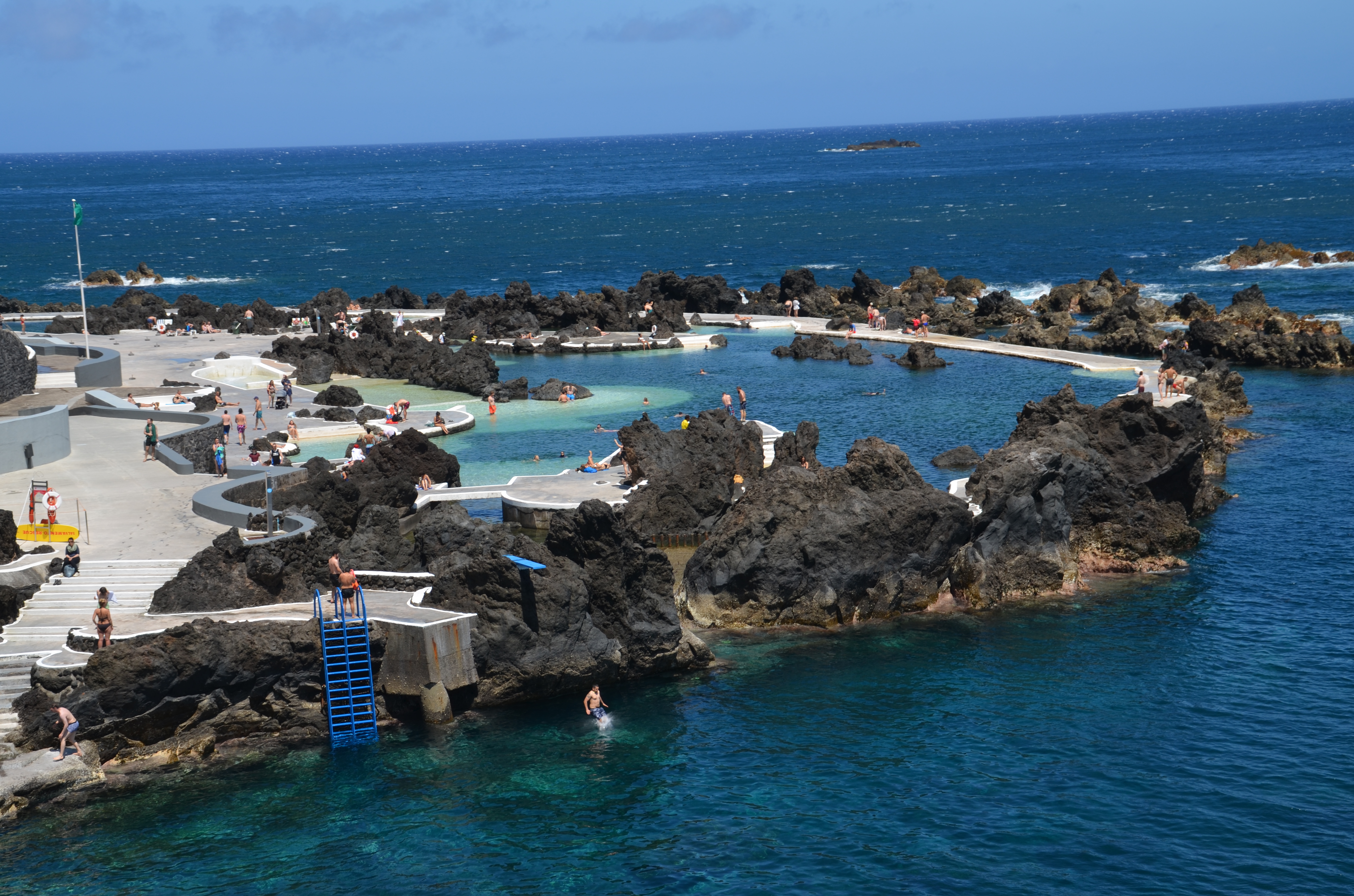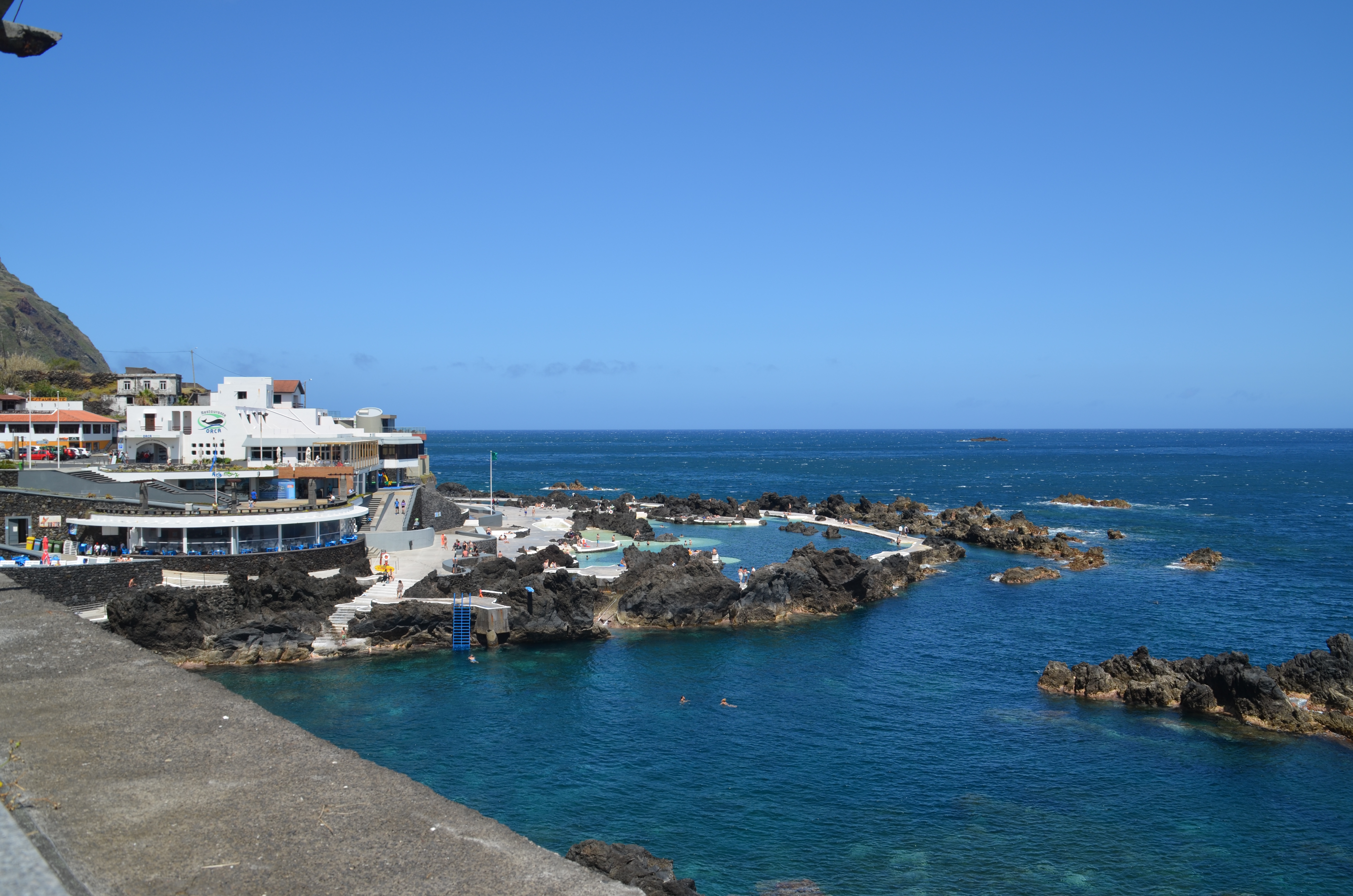 Porto Moniz ist ein wunderschöner Ort im Nordwesten mit der Möglichkeit in Lavabecken zu schwimmen. Am Hang gelegen, kann man höhere Aussichtspunkte und eine alte Kirche aus dem Jahr 1688 besuchen. Im Aquarium kann man die Vielfalt des atlantischen Lebens betrachten, Muränen, Haie, Hummer, Seesterne, Rochen und Garnelen in einer großen Farbenpracht sind zu bestaunen. Unser Hotel das Aqua Natura Bay lag direkt vor dem Aquarium und den beiden Bädern mit den großen Lavabecken, in denen man in angenehmen Temperaturen quasi direkt im Atlantik baden kann.