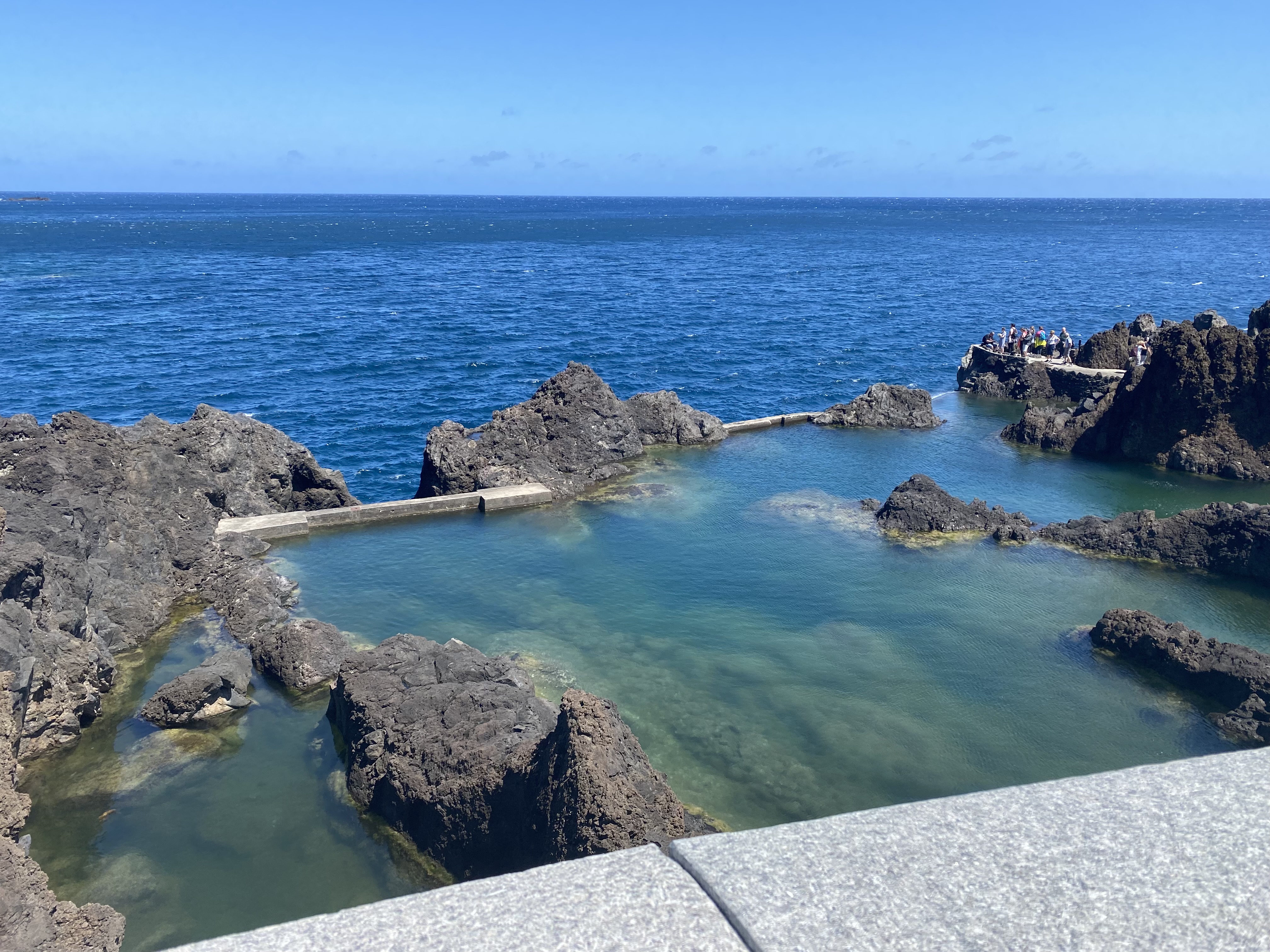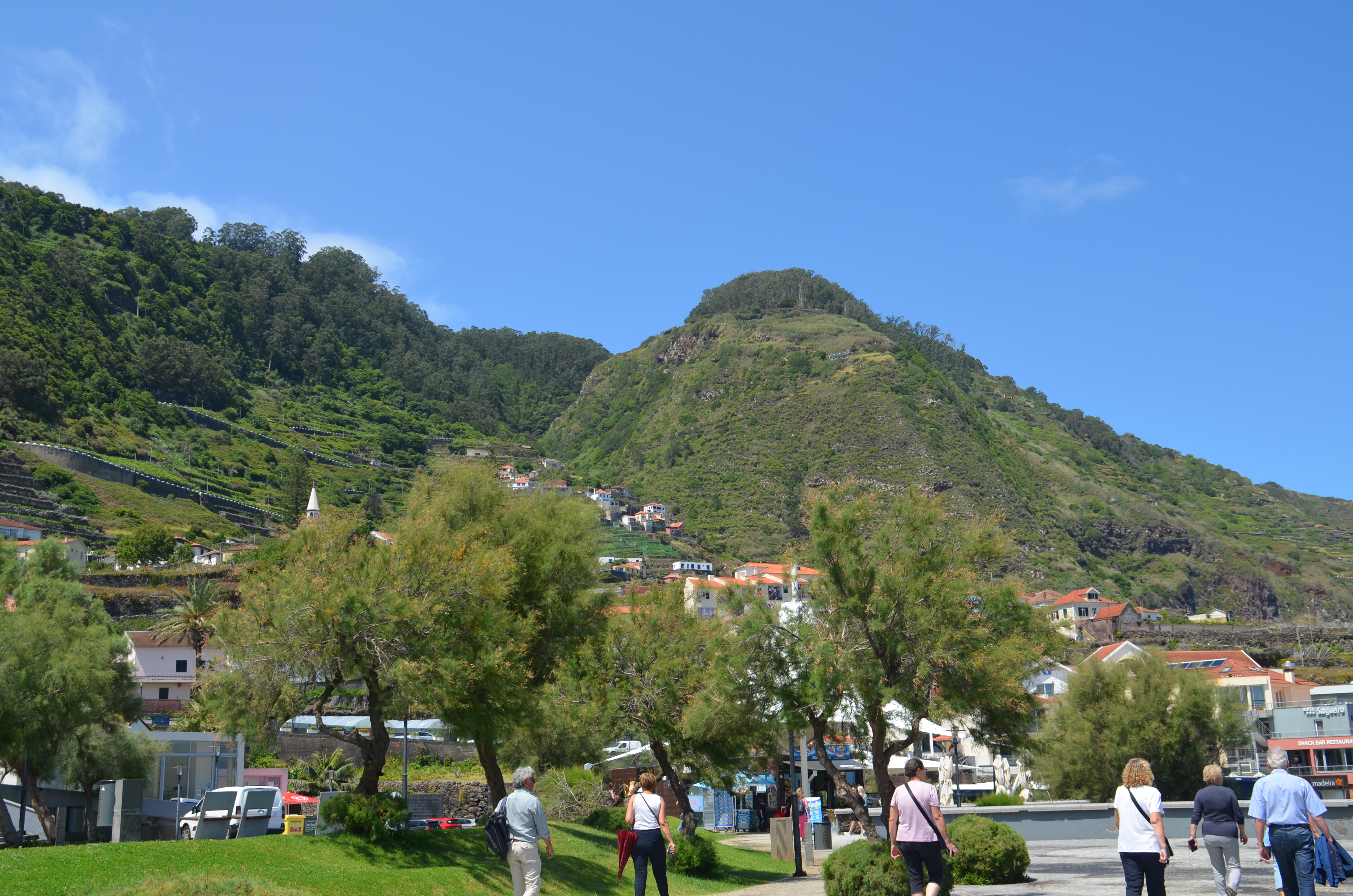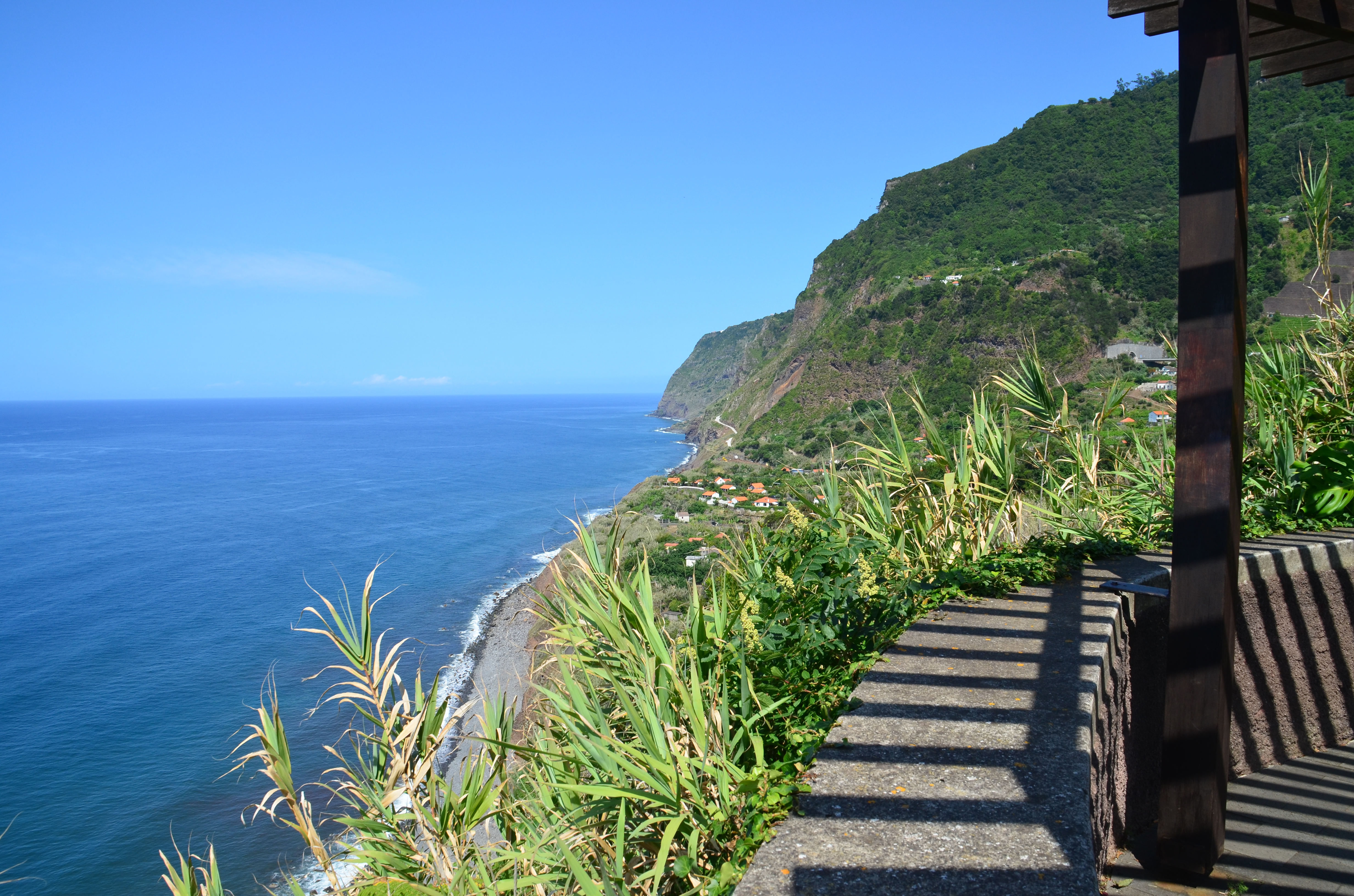 Vom Hotel aus kann man durch den Ort und dann direkt zu einem kleinen Ausguck gehen, von dem man einen herrlichen Blick auf die nördliche Küste hat. Der Blick reicht bei guter Sicht sogar bis zum kleinen Felsen vor Porto Moniz.