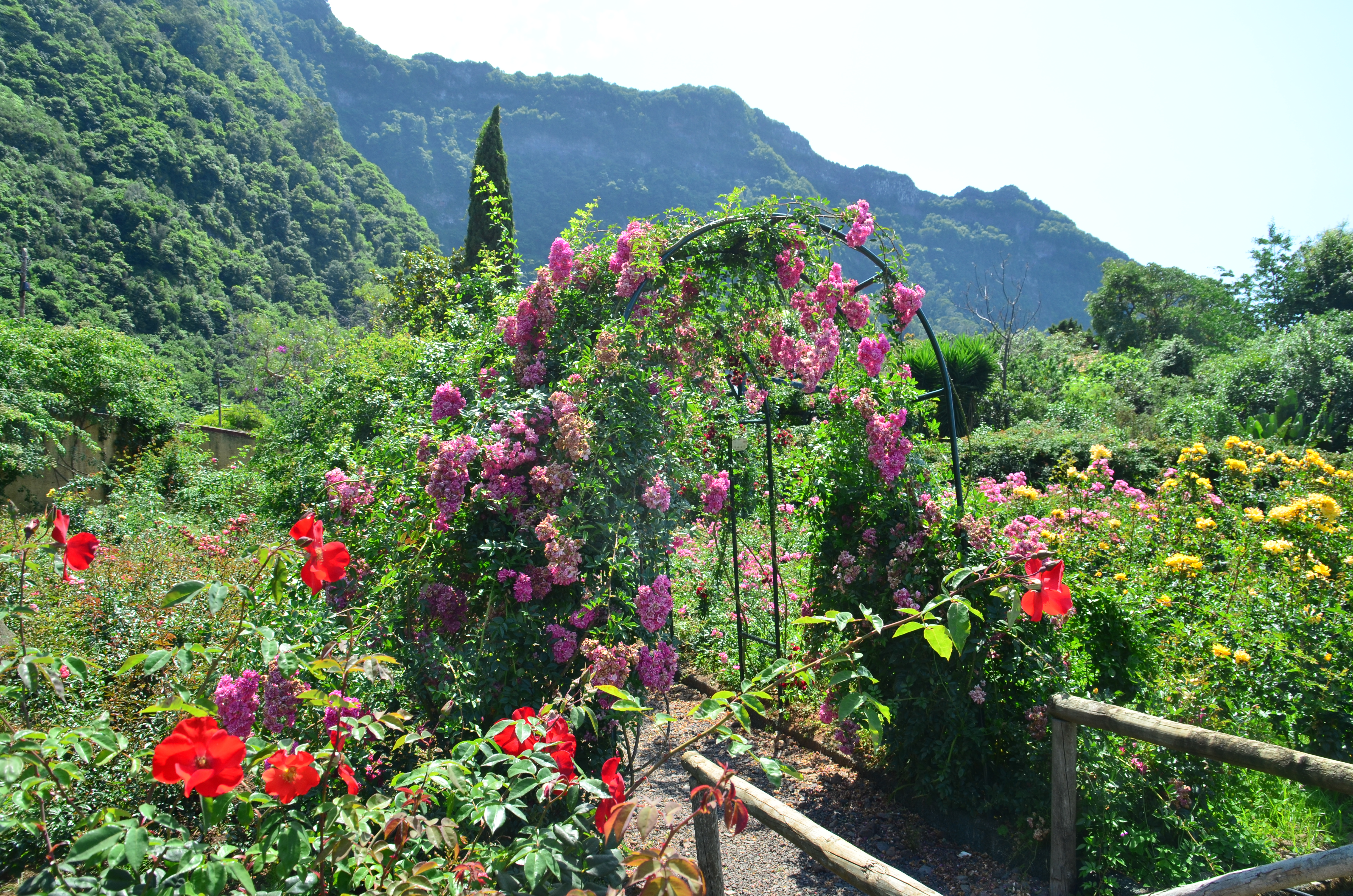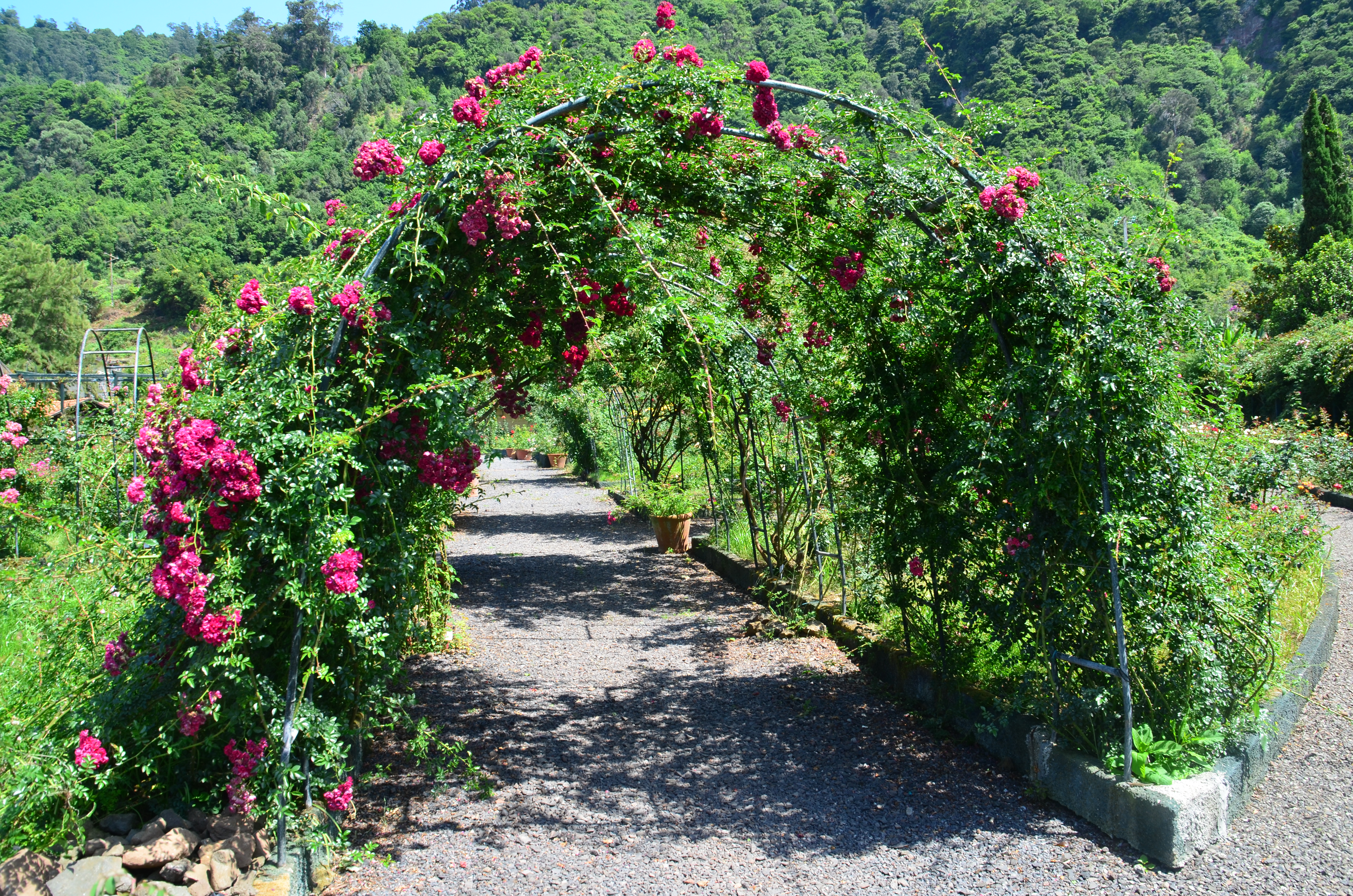 Letzte Station auf unserer Tour vor der Rückkehr nach Funchal war der kleine Ort Arco de São Jorge. Dort liegt neben einer Hotelanlage mit mehreren Bungalows auch einer der größten Rosengärten Europas. Wer sich im Hotel Pestana Quinta do Arco einquartiert, kann von der Hotelanlage direkt in den Rosengarten Im Quinta Do Arco gehen und sich dort an einer Vielzahl verschiedener Rosen erfreuen.