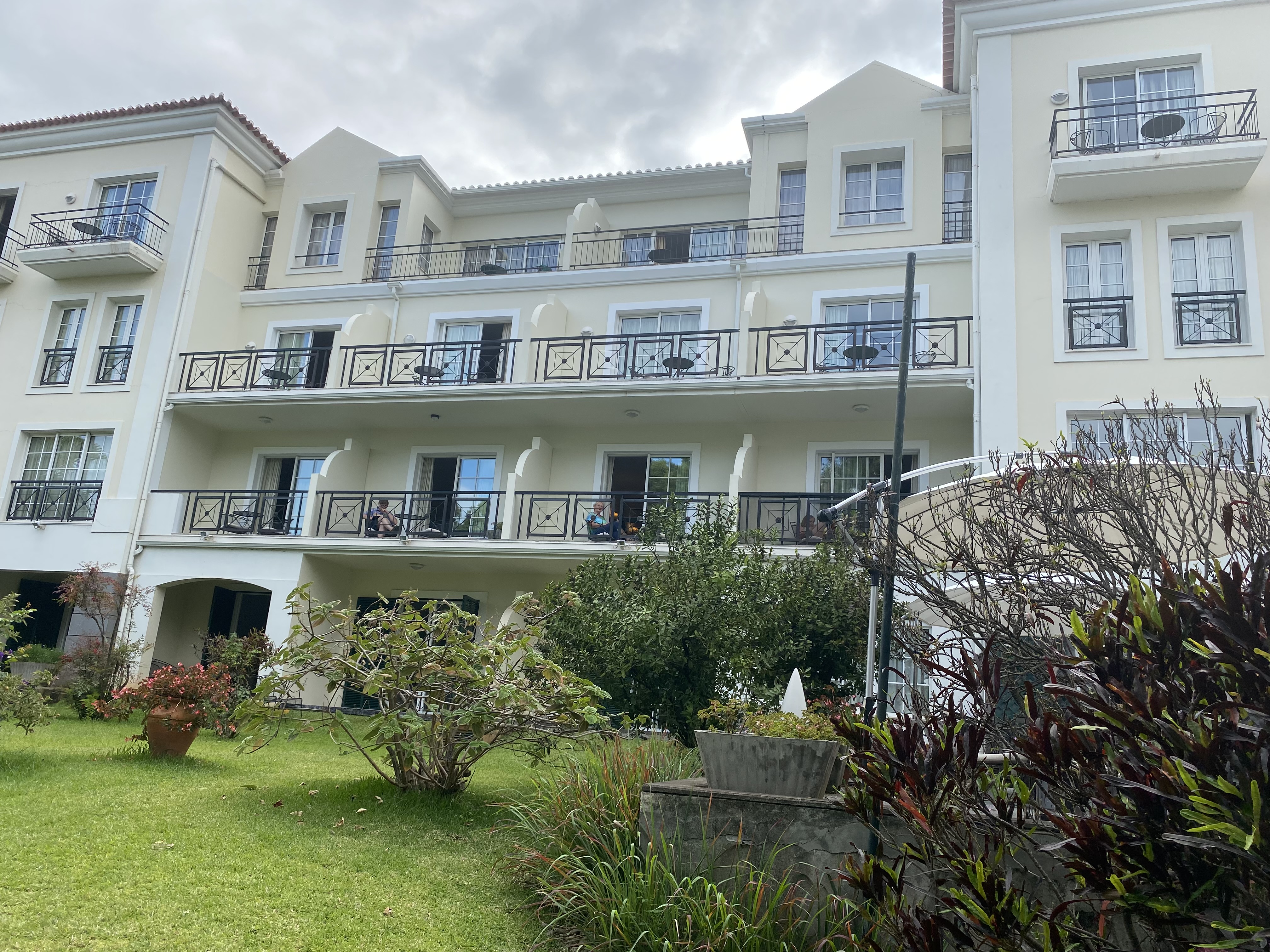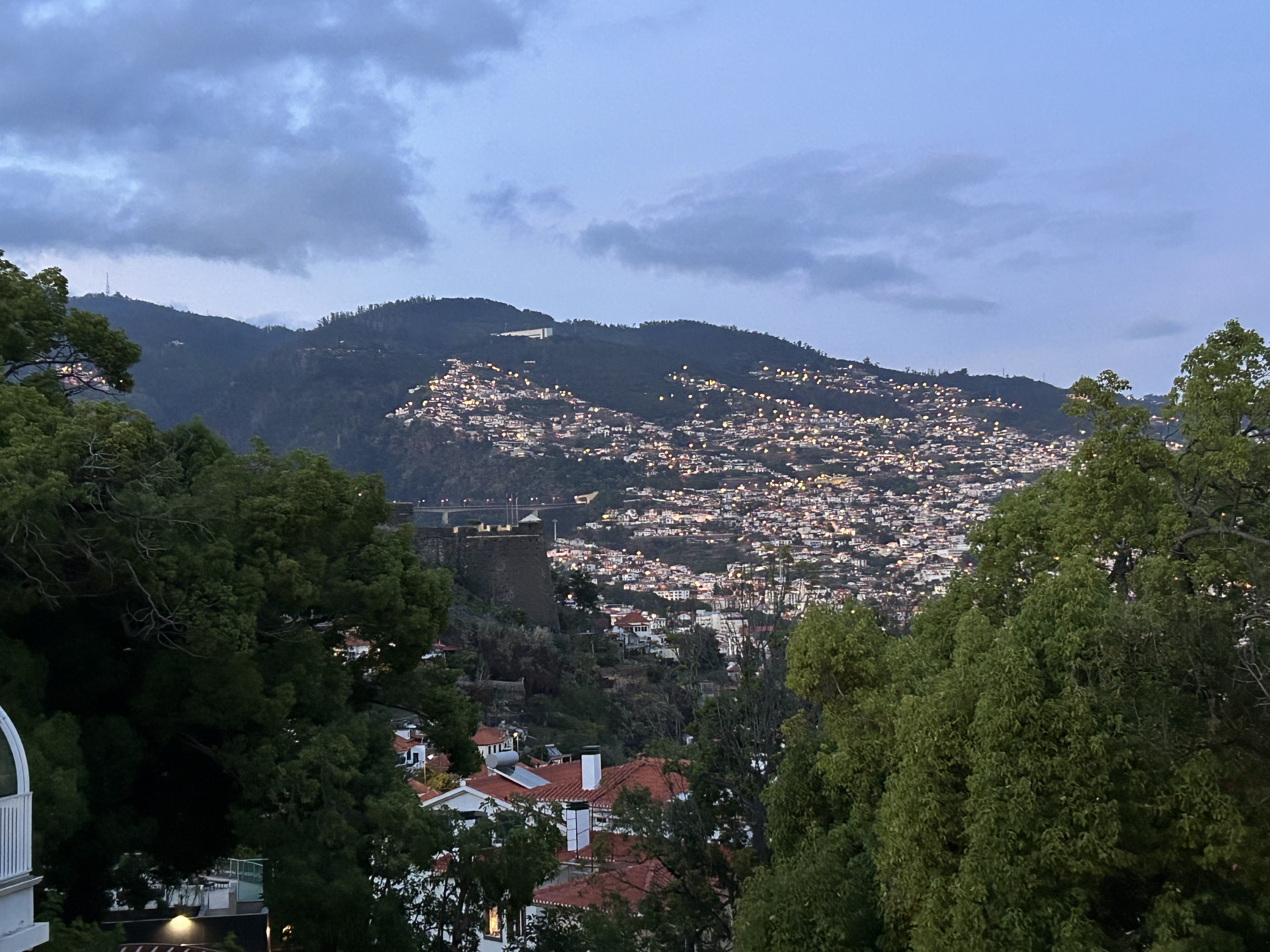 Funchal ist voll von touristischem Leben, in Küstennähe ragen eine Vielzahl von großen Hotels in die Höhe. Wir hatten dagegen ein höher gelegenes Hotel gewählt, im Quintinha São João Hotel starteten wir aufgrund unseres verspäteten Fluges zu sehr später Zeit mit einem sehr freundlichen Empfang und einem Drink an der Bar.